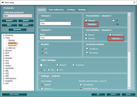 Select an ABLB protocol. If you have not created such a protocol, follow the steps below to do so (when using Interacoustics software):
