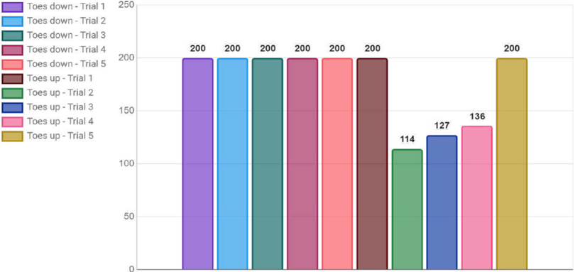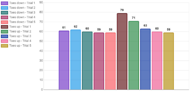 The force plate will then move five times in a forwards tilt direction, which results in a toes-down motion.