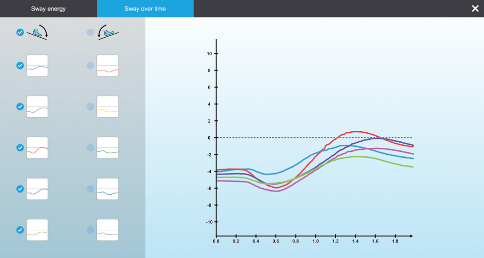Following the ADT, the postural sway responses from all trials are extracted. A report is generated for sway energy and sway over time.