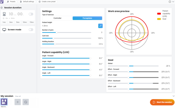 The patient can sit or stand when using this module in Controller mode, however the patient must stand when using the Forceplates mode.