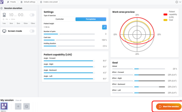 12. Perform real time progressions by changing the parameters on the left side of the clinician screen (see below). Patients cannot see these adjustments.