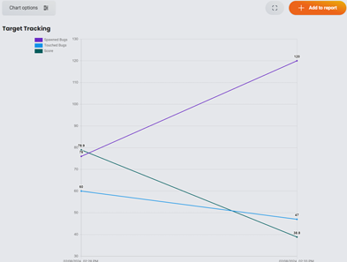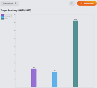 Default data points: total number of insects displayed (spawned bugs), total number of insects caught (touched bugs), and score (% correct).