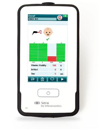 Der automatisierte ABR-Algorithmus des Sera™ nutzt die gewichtete Durchschnittberechnung nach dem Bayes-Theorem, um die Lärmbelastung während der Aufzeichnung zu minimieren. Die Verwendung des Sera™ mit EarCups hilft ebenfalls dabei, Störgeräusche unter anspruchsvollen Testbedingungen zu reduzieren.